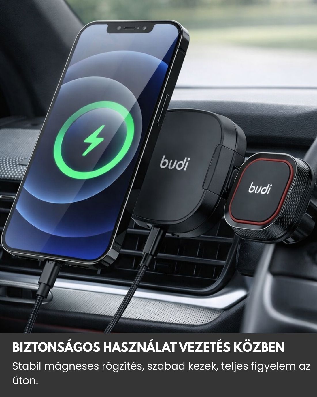 Az autós szellőzőrácsba szerelhető mágneses telefontartó és vezeték nélküli töltő praktikus megoldást nyújt mindazok számára, akik vezetés közben is biztonságosan szeretnék használni telefonjukat. Legyen szó telefonhívásról vagy GPS-navigációról, ezzel az eszközzel nincs szükség a készülék kézben tartására, így a figyelmed végig az úton maradhat.