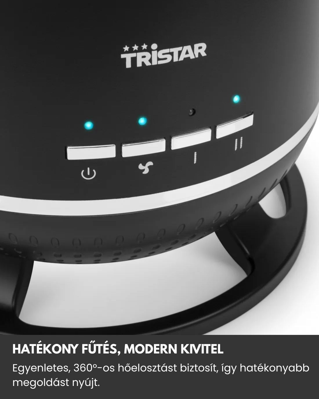 - 360°-os fűtés: a teljes helyiség gyors és egyenletes felfűtéséért