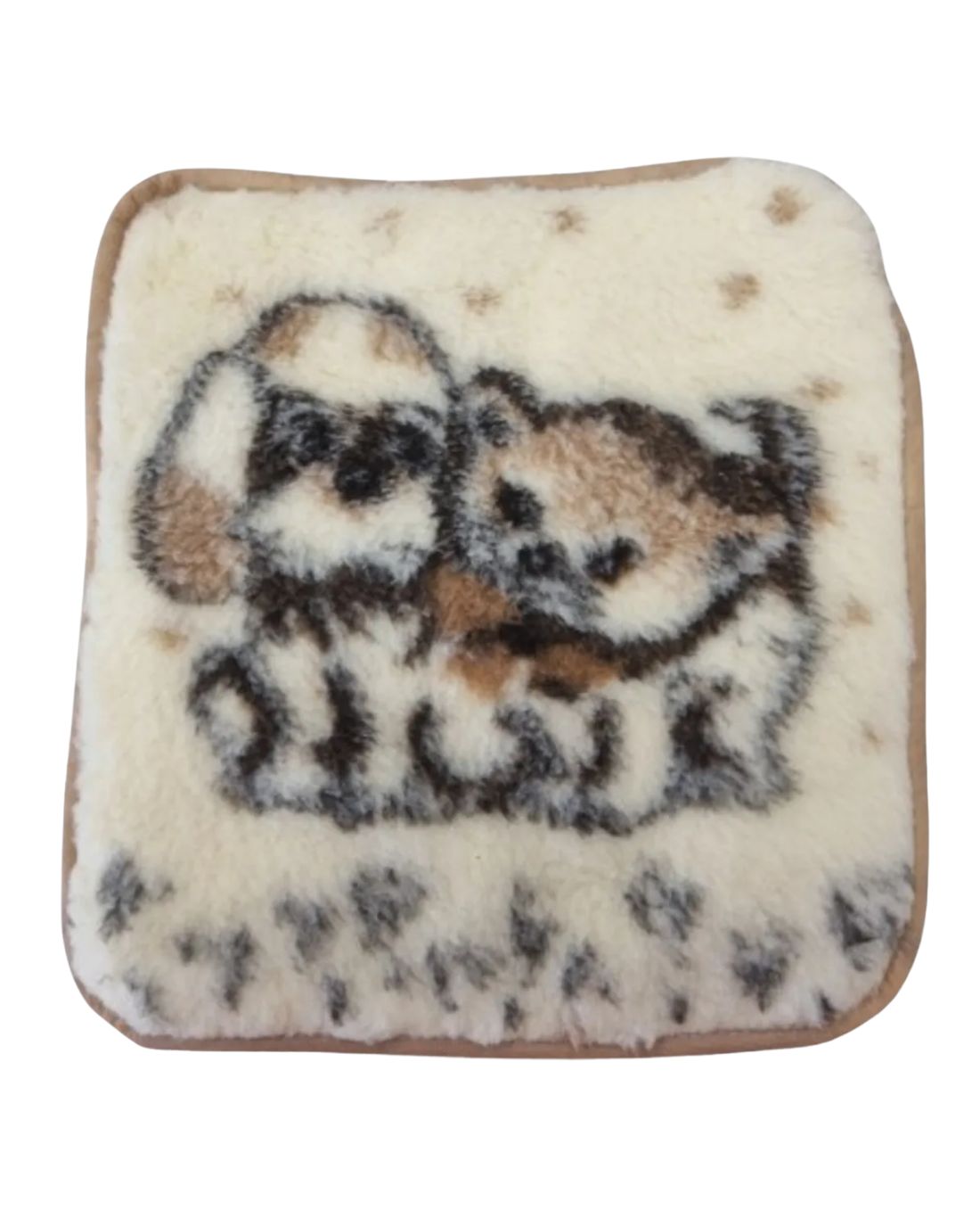 A gyapjú ülőpárna kényelmes megoldás a hideg ülőfelületek ellen, legyen szó székről, autóülésről vagy kerti bútorról. Természetes gyapjú anyaga melegen tart és jól szellőzik, így hosszabb ülésnél sem izzad rá. Az előlapon található vidám kutya–cica minta barátságos megjelenést ad, míg a 40 × 40 cm-es méret sokoldalú, mindennapi használatra ideális.