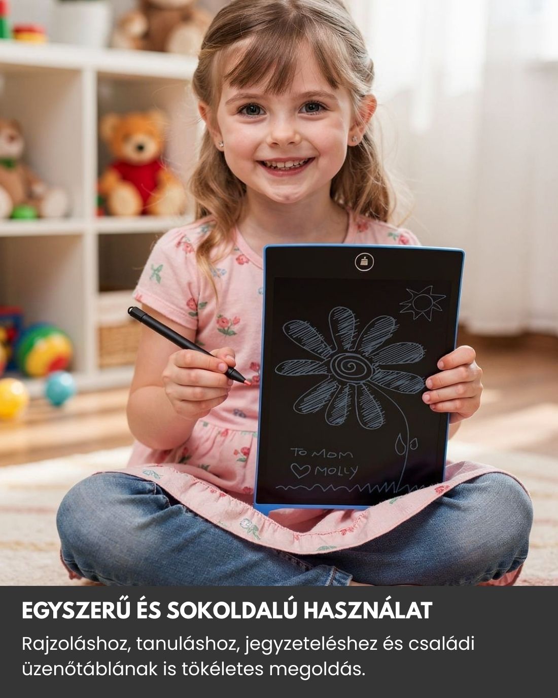 Ez a digitális rajztábla a kreativitás, tanulás és jegyzetelés ideális eszköze, amely otthon, iskolában vagy útközben is használható.