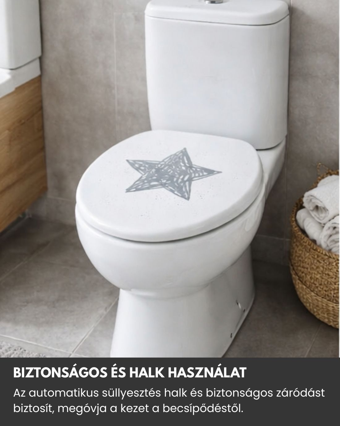 Lágyan záródó automatikus süllyesztő mechanizmussal felszerelt, a WC-fedél és az ülőke finoman és halkan záródik. A mechanizmus megvédi a gyermekek kezét a sérülésektől