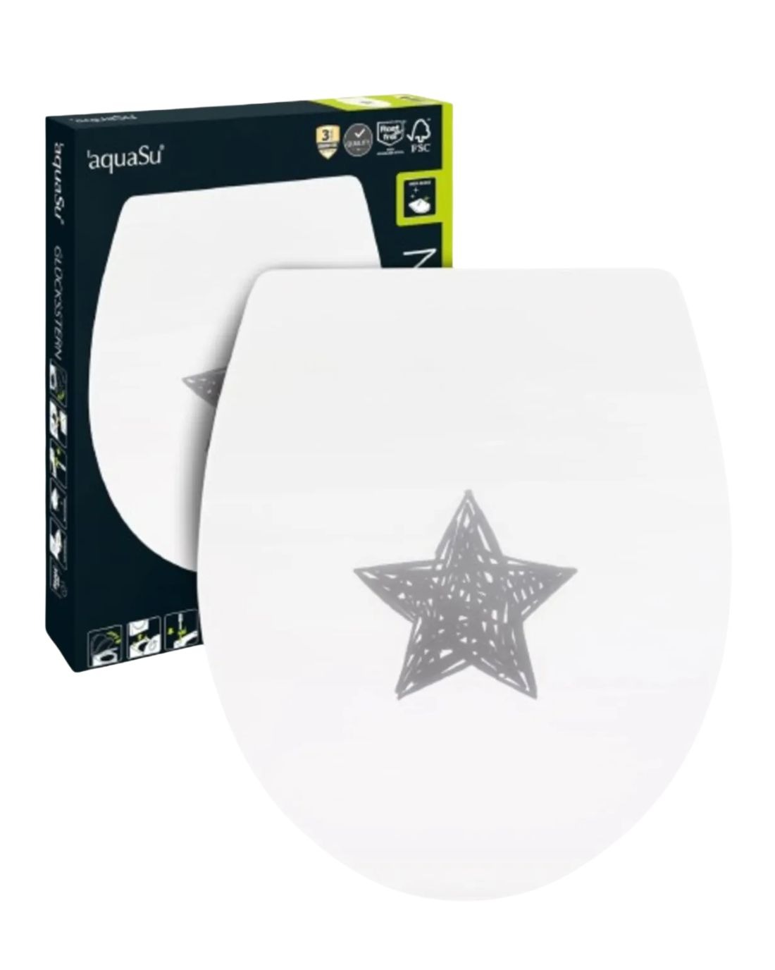 A WC-fedél antibakteriális Duroplast műanyagból készült. Ez lehetetlenné teszi a baktériumok és szennyeződések lerakódását a sima felületen.