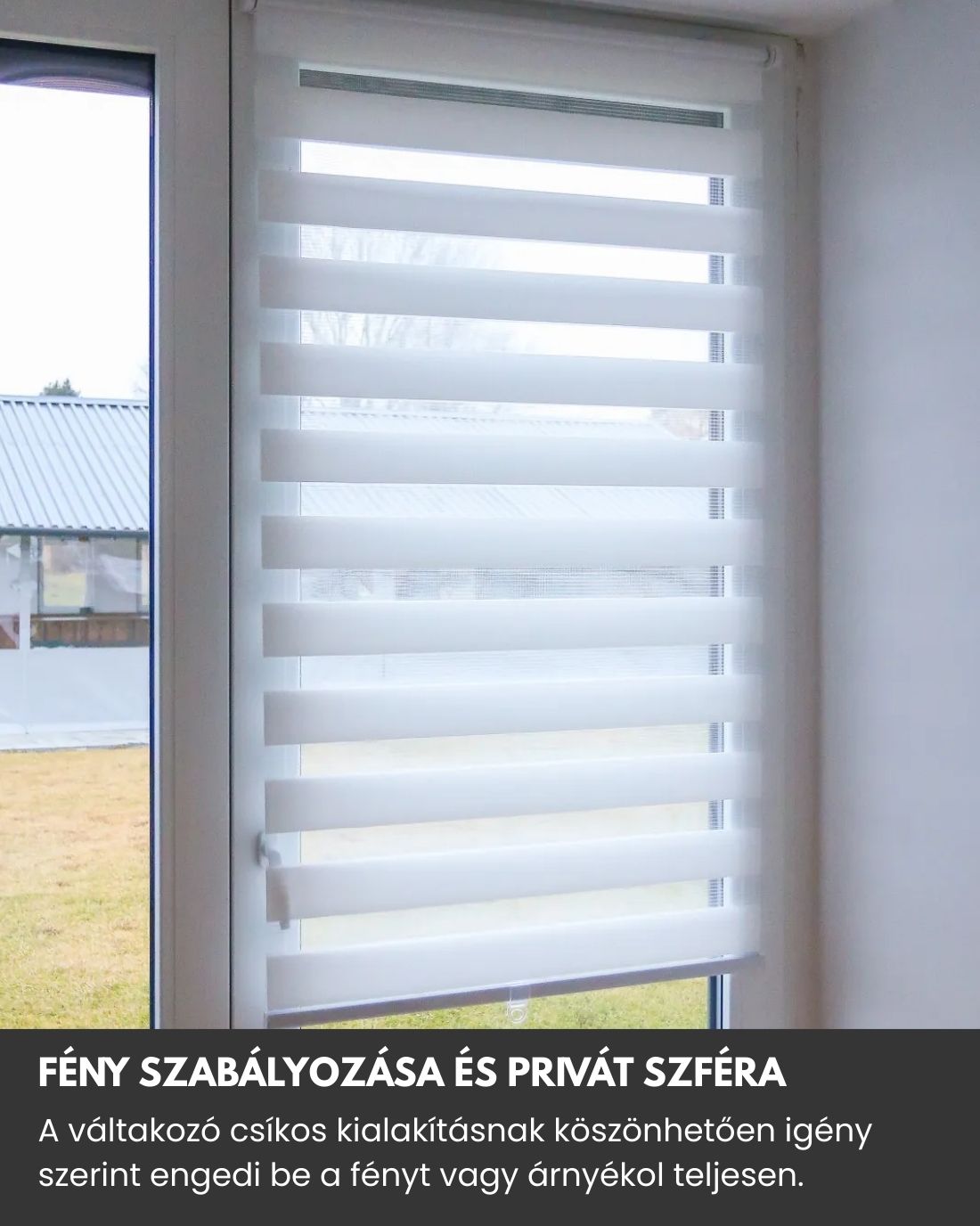 A fényre állítható Nappali és éjszakai roló két egymással szemben lévő szövetpanelből áll, váltakozó fehér és átlátszó csíkokkal, így egyszerűen szabályozhatod a beáramló fényt. Egyaránt biztosít napvédelmet és privát szférát, miközben modern, letisztult megjelenést kölcsönöz minden helyiségnek.