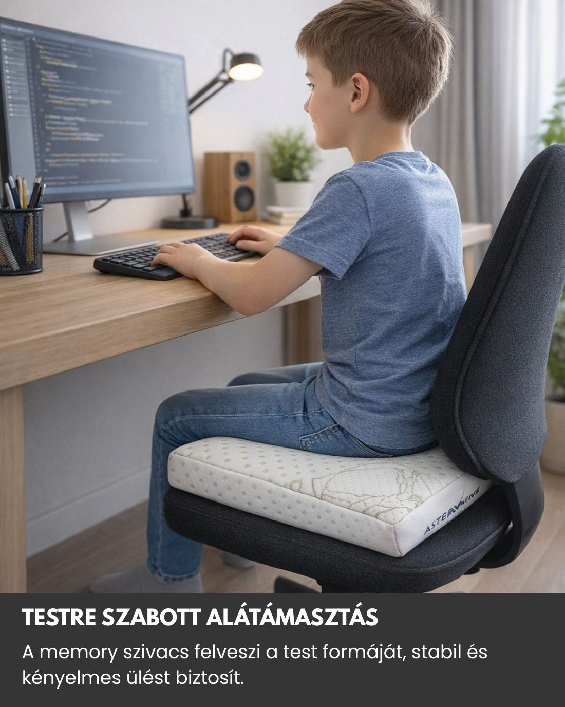 A párna különleges, háromdimenziós alakváltó képességgel rendelkező anyagból készült, amely tökéletesen követi a test kontúrjait. Ez biztosítja a stabil ülést és az optimális alátámasztást, legyen szó irodai munkáról, autózásról vagy otthoni pihenésről.